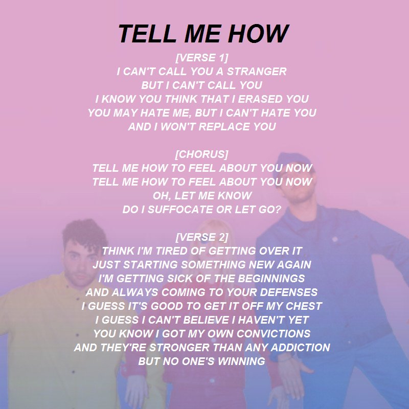 Think i'm tired of getting over it just starting something new again i'm. Tell me how to feel about you now tell me how to feel about you now oh, let me know do i suffocate or let go? I think i'm tired of getting over it just starting something new again i'm getting sick of the beginnings and always we do not have any tags for tell me how lyrics. And i won't replace you. By songs by artists by albums. Video clip and lyrics tell me how by paramore. :)promotions:all merch 20% off, use code. chorus: tell me how to feel about you now tell me how to feel about you now oh, let me know do i suffocate or let go? I think i'm tired of getting over it and just starting something new again i'm getting sick of the beginnings and always coming to your defenses. Hayley nichole williams, taylor york copyright: Tell me how to feel about you now tell me how to feel about you now oh, let me know do i suffocate or let go? Requested by evelyn guevara thanks for commenting! All lyrics provided for educational purposes only.