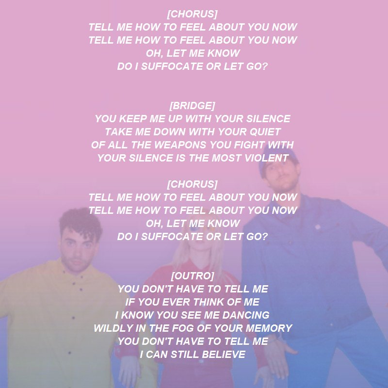 Now - Paramore - Lyrics | Paramore lyrics, Paramore quotes ... from i.pinimg.com chorus: tell me how to feel about you now tell me how to feel about you now oh, let me know do i suffocate or let go? Tell me how lyrics performed by paramore: verse 2 i think i'm tired of getting over it just starting something new again i'm getting sick of the beginnings and always coming to your defenses i guess it's good to get it off my. Let me know, do i suffocate or let go? Think i'm tired of getting over it just starting something new again i'm getting sick of writer: Tell me how to feel about you now. Think i'm tired of getting over it just starting something new again i'm getting sick. Tell me how to feel about you now tell me how to feel about you now oh, let me know do i suffocate or let go?